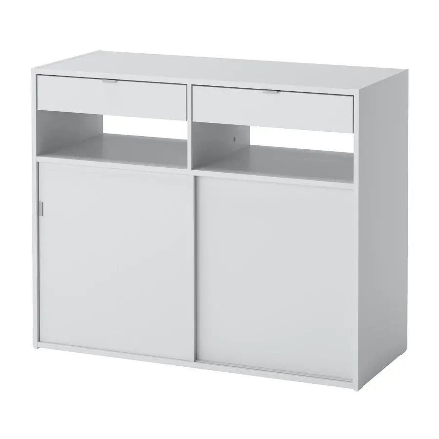 ИКЕА IKEA Простой дизайн, впечатляющий своей функциональностью. Это дает массу возможностей вписаться в интерьер вашего дома. Буфет включает в себя открытые и закрытые решения для хранения вещей с раздвижными дверцами и 2 практичными ящиками сверху. Оригинальная икея/ikea