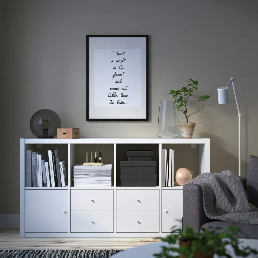 ИКЕА IKEA Простая единица хранения может быть достаточной для ограниченного пространства или основой для более крупного решения для хранения, если ваши потребности изменятся. Практичные вставки скрывают вещи и помогают поддерживать чистый и аккуратный вид. Полки идеально выровнены с рамой, создавая сильное и единообразное выражение. Гибкая и адаптируемая конструкция позволяет вам наслаждаться своим KALLAX в течение многих лет, даже когда ваши потребности меняются или когда вы переезжаете. Выберите, хотите ли вы разместить его вертикально или горизонтально и использовать в качестве полки или буфета. Оригинальная икея/ikea