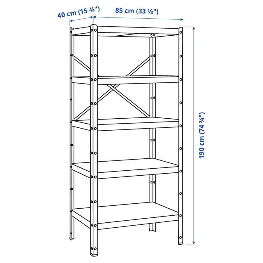 ИКЕА IKEA Полка идеально подходит для тяжелых вещей, так как выдерживает 95 кг, что в два раза больше, чем стандартная полка. Гарантия 10 лет. Прочные и долговечные полки можно использовать в любом месте дома: в гараже, ванной, на кухне и в кладовой, поскольку они устойчивы к влаге, грязи и большим нагрузкам. Стеллаж прочный, легко моется и защищен от ржавчины, поскольку изготовлен из оцинкованной стали с порошковым покрытием. Оригинальная икея/ikea