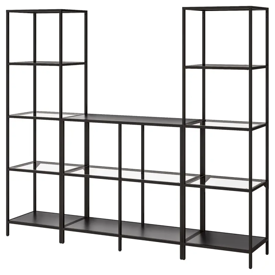 ИКЕА IKEA Закаленное стекло и металл — прочные материалы, создающие ощущение открытого и воздушного пространства. Вы можете выбрать тот вид, который вам больше всего нравится, поскольку верхняя и нижняя панели имеют одну черно-коричневую и одну черную стороны. Регулируемые ножки; устойчиво стоит даже на неровном полу. Оригинальная икея/ikea