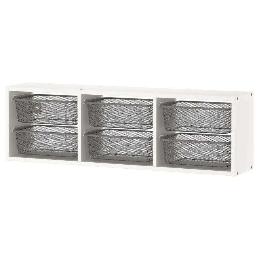 ИКЕА IKEA С рамами и сетчатыми ящиками для хранения серии TROFAST вы можете подобрать решение для хранения, которое позаботится о больших и маленьких вещах даже в других частях дома. Использование стен для хранения — это здорово, особенно если у вас ограниченное пространство в комнате. Сетчатые ящики для хранения придают комбинации хранения стильный вид, который хорошо подходит для спальни подростка. Оригинальная икея/ikea