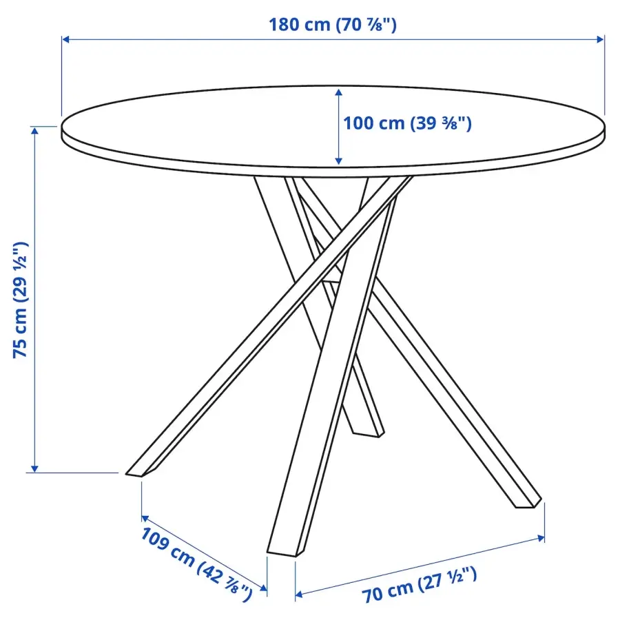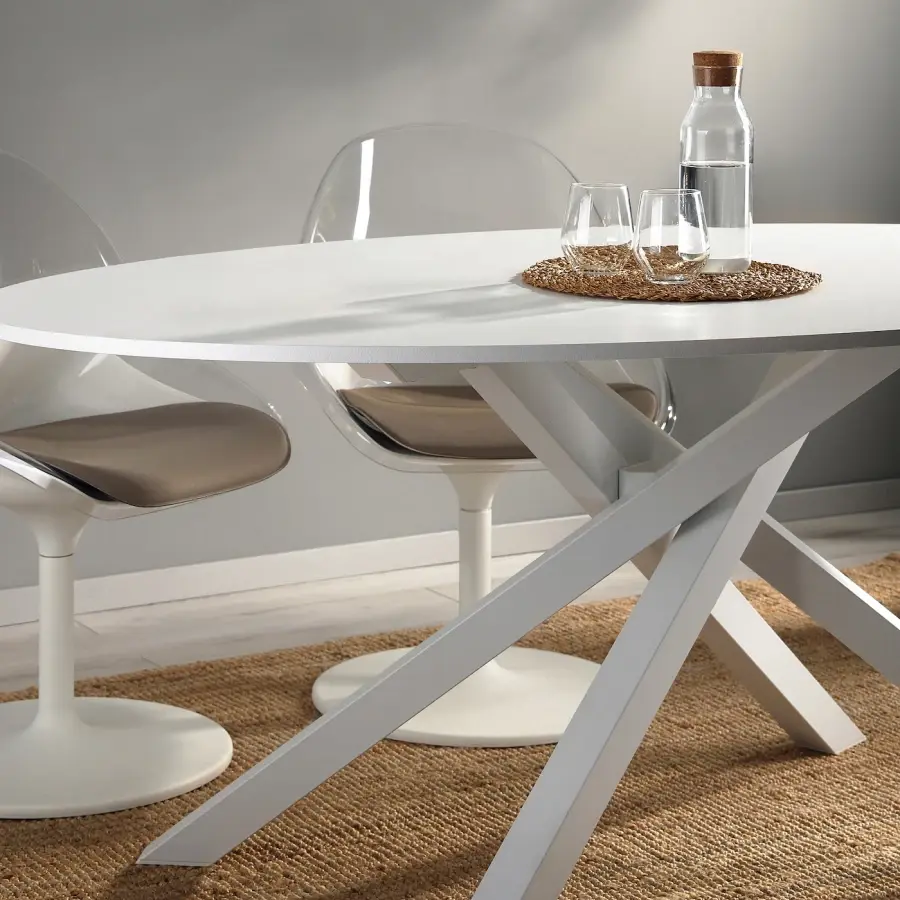 ИКЕА IKEA Прочная конструкция со скрещенными металлическими ножками создает современный образ, полный характера. Стол одинаково хорошо впишется и на кухне, и в гостиной – а овальная форма обеспечит пространство многим людям! Оригинальная икея/ikea