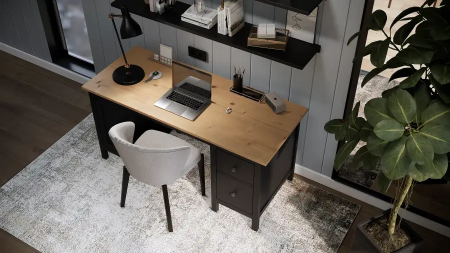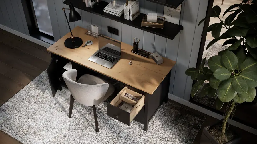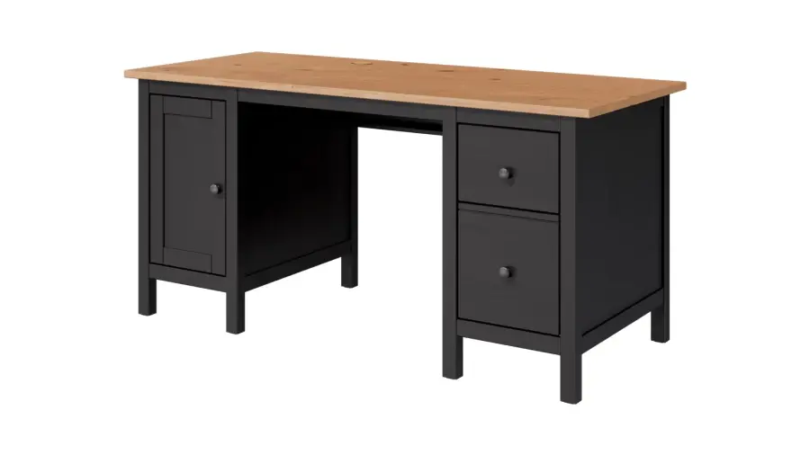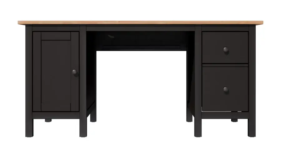 Изготовлен из массива сосны, стол сохраняет природную текстуру древесины, добавляя тепла и уюта в любой интерьер. Просторная столешница и удобные выдвижные ящики обеспечивают достаточно места для работы и хранения, а задняя панель скрывает кабели и провода, поддерживая порядок на рабочем месте.