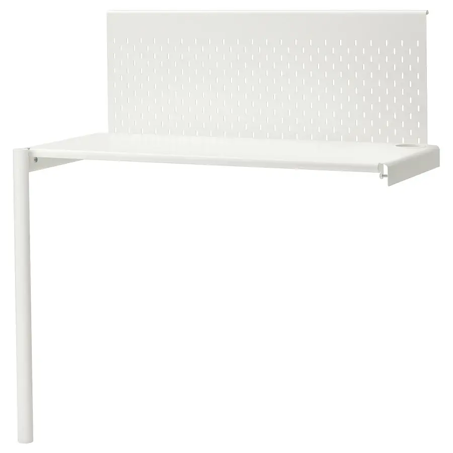 ИКЕА IKEA Столешница достаточно велика для ноутбука и книг, но при этом у вас достаточно места для уютного уголка с подушками или местом для хранения вещей рядом с ним. Вы можете легко содержать рабочее место в чистоте и порядке, поскольку имеется встроенный кабельный органайзер и канал для ручек. Металлическая панель расположена под углом к столешнице и имеет ту же высоту, что и лист бумаги формата А4. Идеально подходит для использования в качестве магнитной доски для объявлений и с аксессуарами из серии СКОДИС. Столешница крепится справа или слева от кровати. Оригинальная икея/ikea