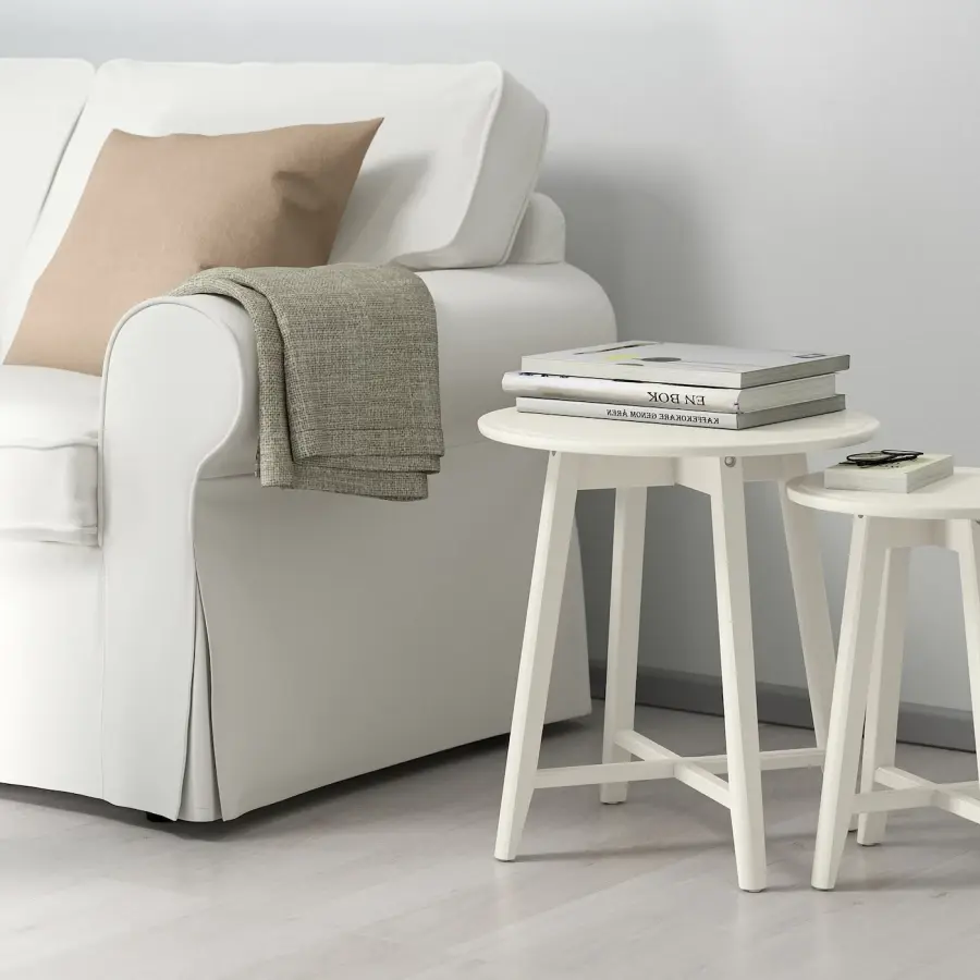 ИКЕА IKEA Круглая форма дает вам просторную столешницу для подносов, кофейных или чайных сервизов. А аккуратные размеры позволяют легко разместить стол в комнате. Входящие в комплект пластиковые ножки защищают пол от царапин. Вы можете легко создать соответствующий образ, дополнив гнездо столов КРАГСТА большим журнальным столиком из той же серии. Оригинальная икея/ikea