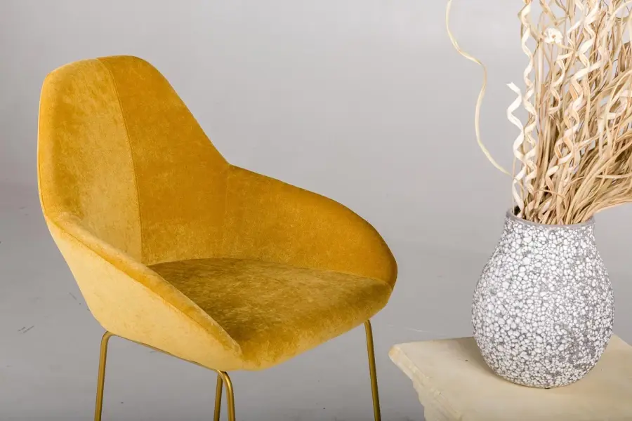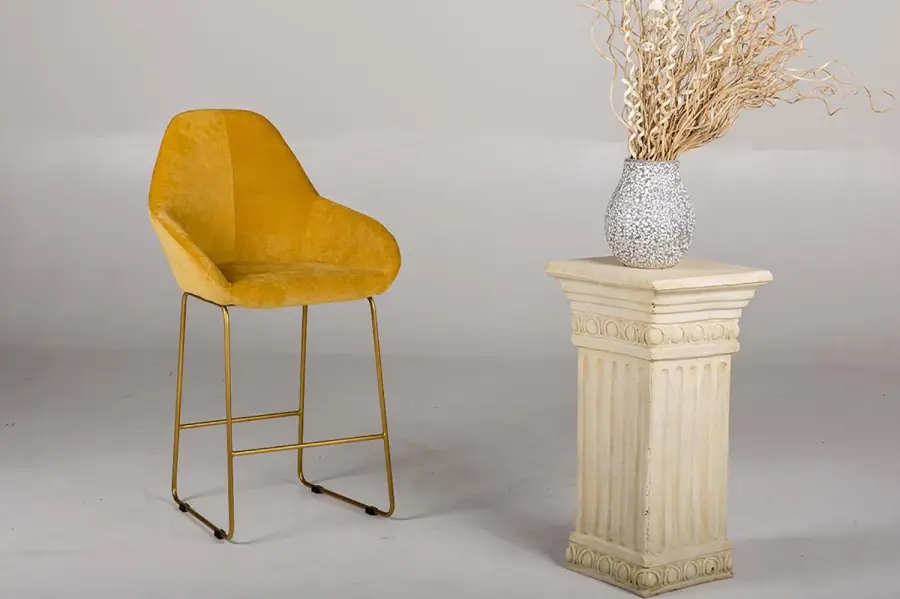 С нежным блеском бархатистой обивки гармонирует мягкое сияние золотистых опор, выполненных в необычной трапециевидной форме. Опоры соединены перекладинами, передняя служит надежной опорой для ног.