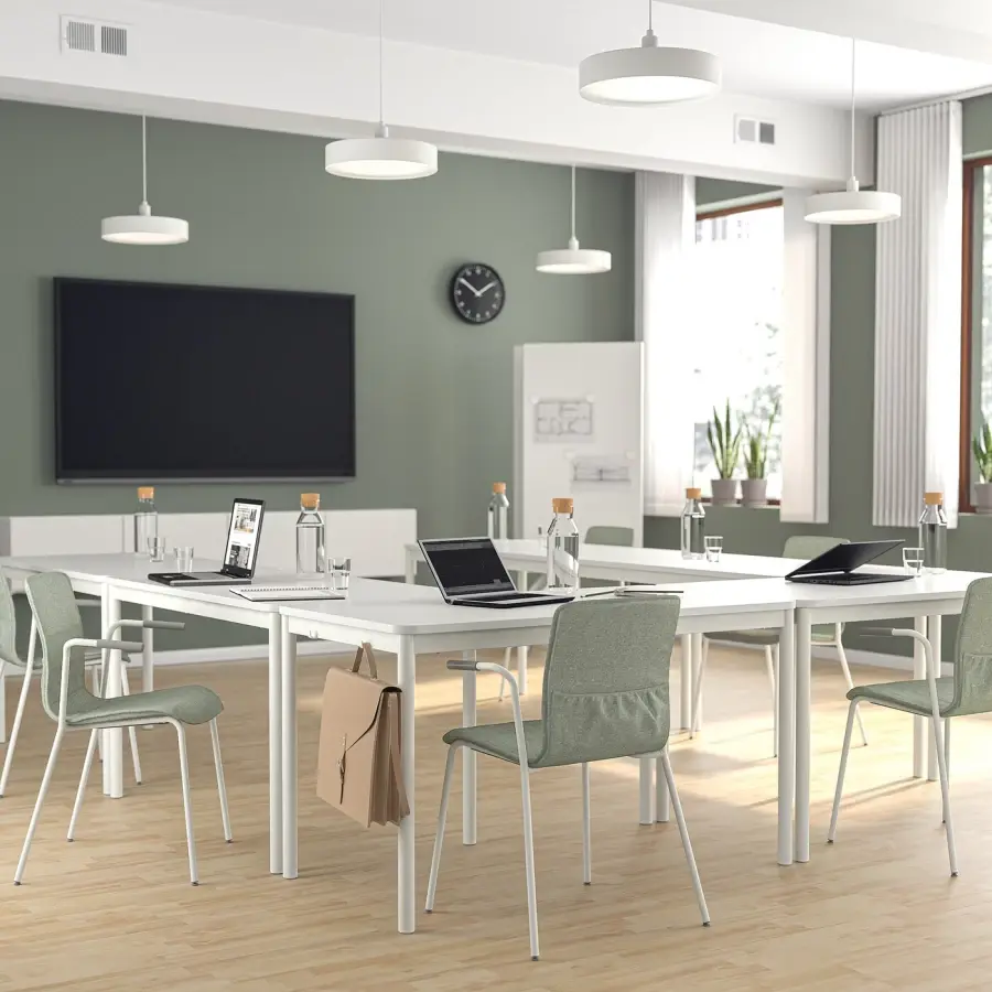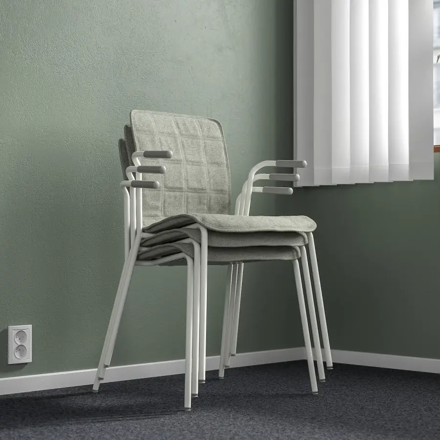 ИКЕА IKEA 10 лет гарантии. Ознакомьтесь с условиями в гарантийной брошюре. Подходит для использования в бизнесе. Чехол стула легко снимается и стирается, благодаря чему ваш конференц-зал выглядит чистым и свежим. Экономьте место, когда стулья не используются. Штабелируйте до 5 стульев с тканевой обивкой или до 7 стульев без обивки. Легкий и простой в перемещении или перестановке в соответствии с потребностями ваших встреч. Резиновые подлокотники удерживают кресло на месте, когда вы подвешиваете его над столешницей, чтобы облегчить уборку полов. Более темный цвет скрывает загрязнения, возникающие в результате частого использования. Более короткие подлокотники позволяют сидеть ближе к столу для лучшей осанки. Кроме того, вам не нужно выдвигать его так далеко, когда вы встаете со стула. Резиновые ножки кресла защищают пол и уменьшают шум от движущихся кресел. Подлокотники обеспечивают поддержку верхней части предплечий и снижают нагрузку на спину и плечи во время длительных встреч. Поясничная опора помогает поддерживать правильную осанку во время сидения, что снижает нагрузку на мышцы нижней части спины. Мягкая пластина под сиденьем стула предотвращает появление царапин на поверхности сиденья, когда стулья ставятся друг на друга. Этот чехол изготовлен из окрашенной в массе ткани GUNNARED из полиэстера. Это прочная ткань, напоминающая шерсть, теплая на вид и с эффектом двухцветного меланжа. Чехлы мягкие и удобные, сделаны из 90% переработанного полиэстера. Доступен в нескольких цветах для легкого сочетания с другой мебелью в комнате. Чехлы на стулья имеют простой и элегантный вид, который легко разместить в любом конференц-зале. Держите под рукой несколько дополнительных чехлов для быстрого и легкого обновления при необходимости. Создайте цветной офис. Используйте чехлы на стулья разных цветов для разных зон для встреч и работы. Кресло для совещаний ЛЕКТАРЕ идеально сочетается с креслом для совещаний ЛОНГФЬЕЛЛЬ и офисным креслом ХАТТЕФЬЕЛЛЬ. Вы также можете использовать стул без чехла. Естественное выражение светлого березового шпона легко сочетается с другой мебелью и цветами. Оригинальная икея/ikea