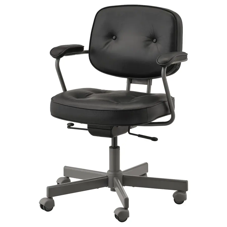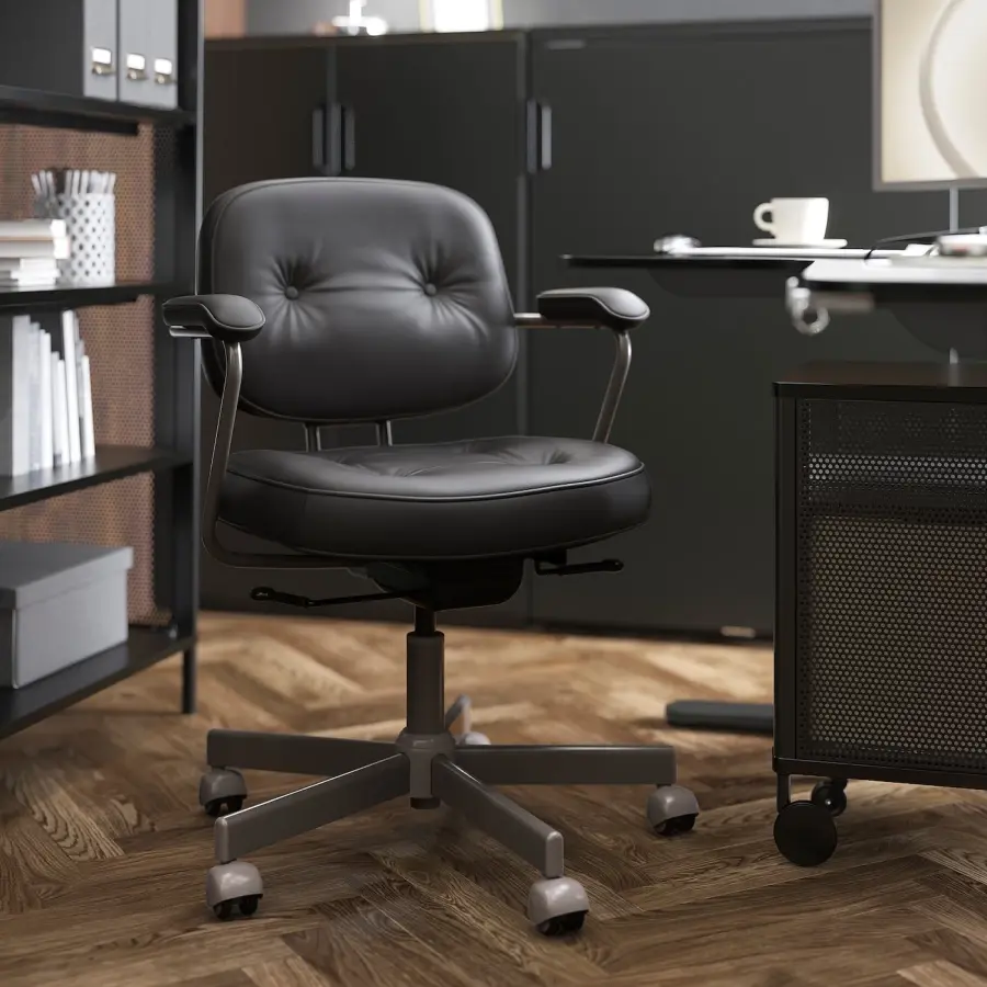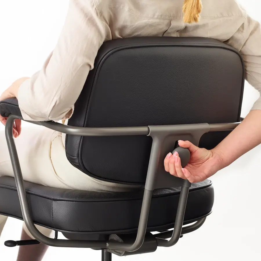 ИКЕА IKEA 10 лет гарантии. Прочтите об условиях в гарантийной брошюре.Подходит для использования в бизнесе.Этот эргономичный офисный стул имеет множество функций, которые позволяют легко адаптировать его к вашему телу.Регулируемое по высоте сиденье позволяет регулировать высоту так, чтобы спина и ноги находились под углом 90°.При автоматическом напряжении наклона вес вашего тела определяет, какое сопротивление оказывает спинка. Это противодавление помогает вам сохранять активную позу в кресле. Синхронизированный механизм наклона позволяет креслу двигаться вместе с вами. Спинка двигается больше, чем сиденье, когда вы откидываетесь назад, поэтому туловище/бедра открываются. Это улучшает кровообращение и поддерживает высокий уровень энергии. Когда вы откидываетесь, синхронизированный механизм наклона позволяет ногам оставаться на полу, а ваш взгляд остается прямо перед собой. Грудь растягивается без дополнительного давления на бедра, улучшая кровообращение. Регулируемая глубина сиденья обеспечивает правильную поддержку спины и равномерное распределение веса по подушке сиденья. Это предотвращает нарушение кровообращения в коленях и уменьшает давление на колени. Спинка может быть отрегулирована для обеспечения поддержки во всех нужных местах и помогает вашему телу поддерживать естественную хорошую осанку. Регулируемая поясничная опора помогает поддерживать правильную осанку во время сидения, что снижает нагрузку на мышцы нижней части спины. Мягкие подлокотники обеспечивают хорошую поддержку и комфорт для ваших рук. С возрастом кресло становится мягче, приобретает более темный оттенок и мелкую патину. Функция безопасности блокирует ролики, когда никто не сидит в кресле, и надежно удерживает его на месте, когда вы встаете. Конструкция колесиков обеспечивает легкость передвижения и маневренность как на ковровом, так и на твердом полу, а также на неровных поверхностях. Оригинальная икея/ikea