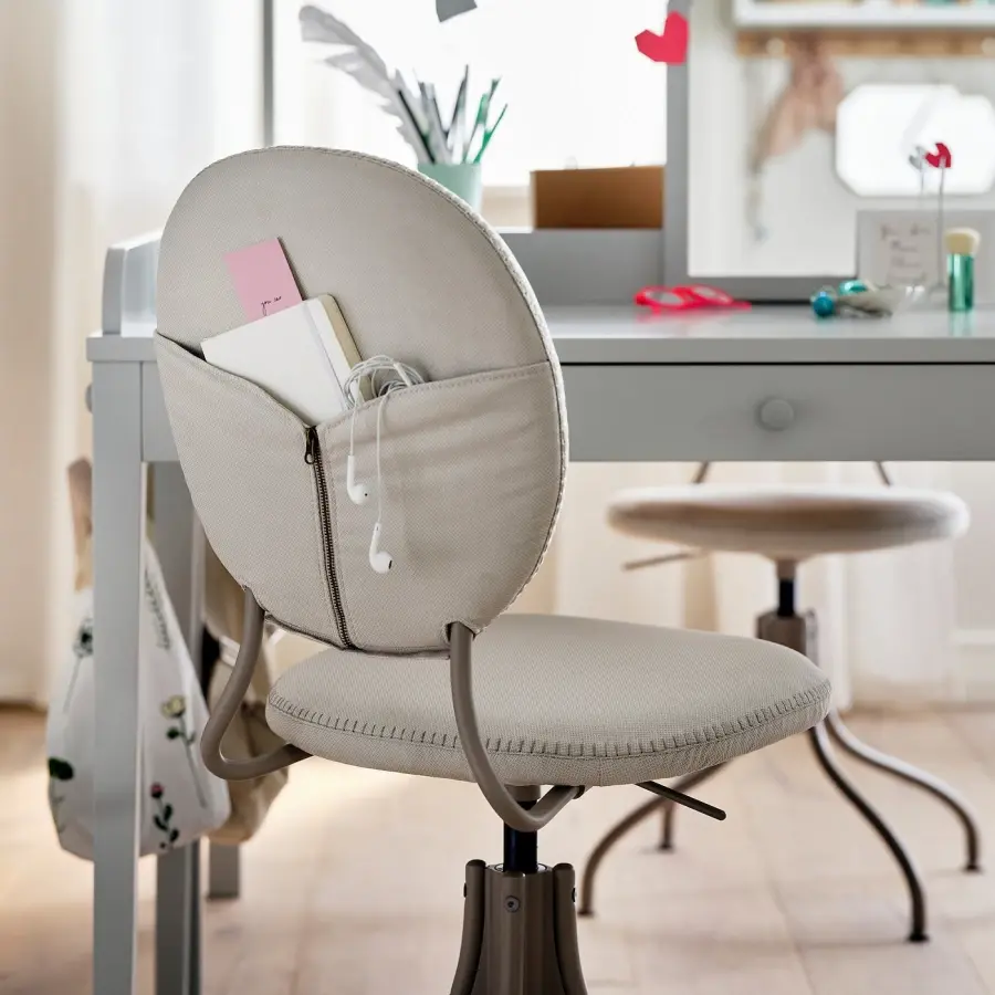 ИКЕА IKEA Благодаря функции поворота и регулируемому сиденью вы можете легко найти удобное рабочее положение. Стул также легко хранить, когда он не используется, поскольку у него нет подлокотников. Практичная и удобная функция поворота позволяет легко вставать из-за письменного стола или столика для макияжа, не перемещая стул. Такие детали, как видимые швы на сиденье и спинке, придают креслу изысканный вид и оттенок ретро-стиля. Щедрая обивка сиденья и спинки делает это кресло отличным выбором, если вы хотите удобно сидеть за столом. выглядит так же аккуратно, как и стационарная крышка. Регулируемые ножки позволяют устойчиво стоять даже на неровном полу. Аккуратный, компактный и удобный для размещения даже в небольших помещениях. Дополняет столы HAUGA и LOMMARP как по размеру, так и по стилю. Оригинальная икея/ikea