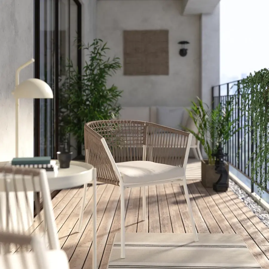 ИКЕА IKEA Этот продукт прочен и прост в уходе, так как он изготовлен из стальной рамы с порошковым покрытием и веревки, которая вручную вплетена в изделие. Вы можете создать завершенный вид вневременного дизайна для вашего открытого пространства, комбинируя стул со столами, доступными в различных размерах. Оригинальная икея/ikea