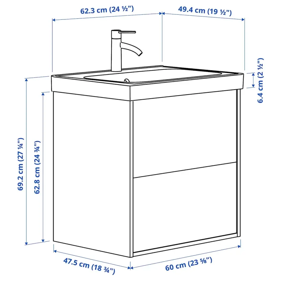TÄNNFORSEN / ORRSJÖN Умывальник с ящиками/мойкой/смесителем ИКЕА