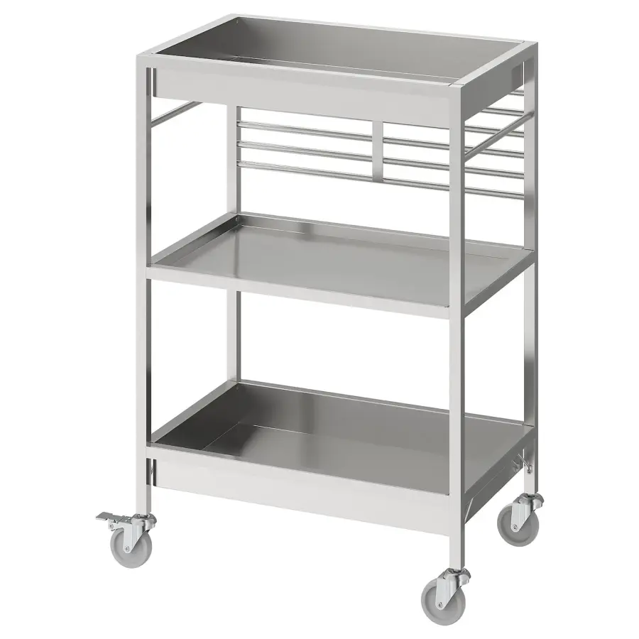 ИКЕА IKEA Обеспечивает дополнительное место для хранения на вашей кухне. Верхняя часть кухонной тележки свободна и может использоваться как поднос, так и место для вещей. Запираемые ролики для высокой устойчивости. Нержавеющая сталь очень легко очищается благодаря ее гладкой, непористой и твердой поверхности. чтобы выдерживать ежедневное использование в вашем доме в течение многих лет. Оригинальная икея/ikea