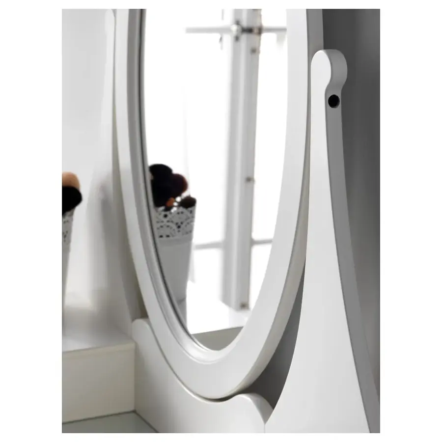 ИКЕА IKEA В двух маленьких ящиках и в большом ящике, спрятанном под туалетным столиком, достаточно места для косметики и украшений. Вам не нужно беспокоиться о пятнах, так как прочная стеклянная столешница легко чистится. Поставляется с защитной пленкой - уменьшает повреждения, если стекло разбито. Оригинальная икея/ikea