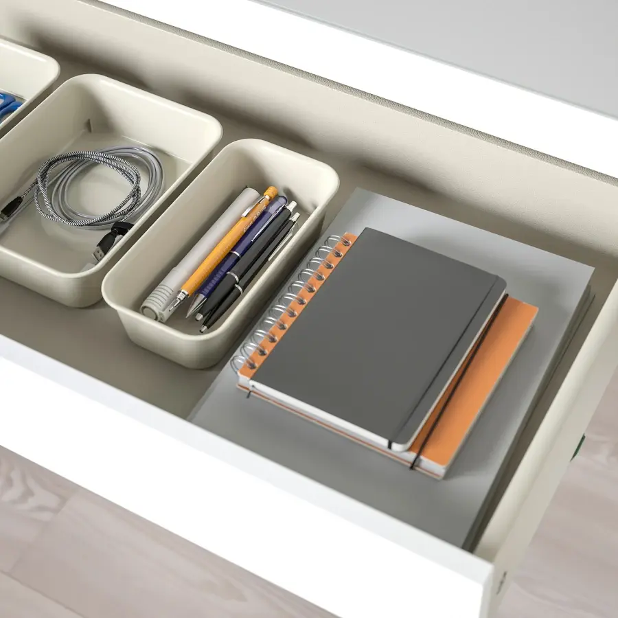 ИКЕА IKEA В широком ящике с войлочной подкладкой достаточно места для косметики и украшений. Вам не нужно беспокоиться о пятнах, так как прочная стеклянная столешница легко моется. Можно дополнить настенным или настольным зеркалом нужного вам размера и стиля. Плавный ход ящика с выдвижным стопором. Оригинальная икея/ikea