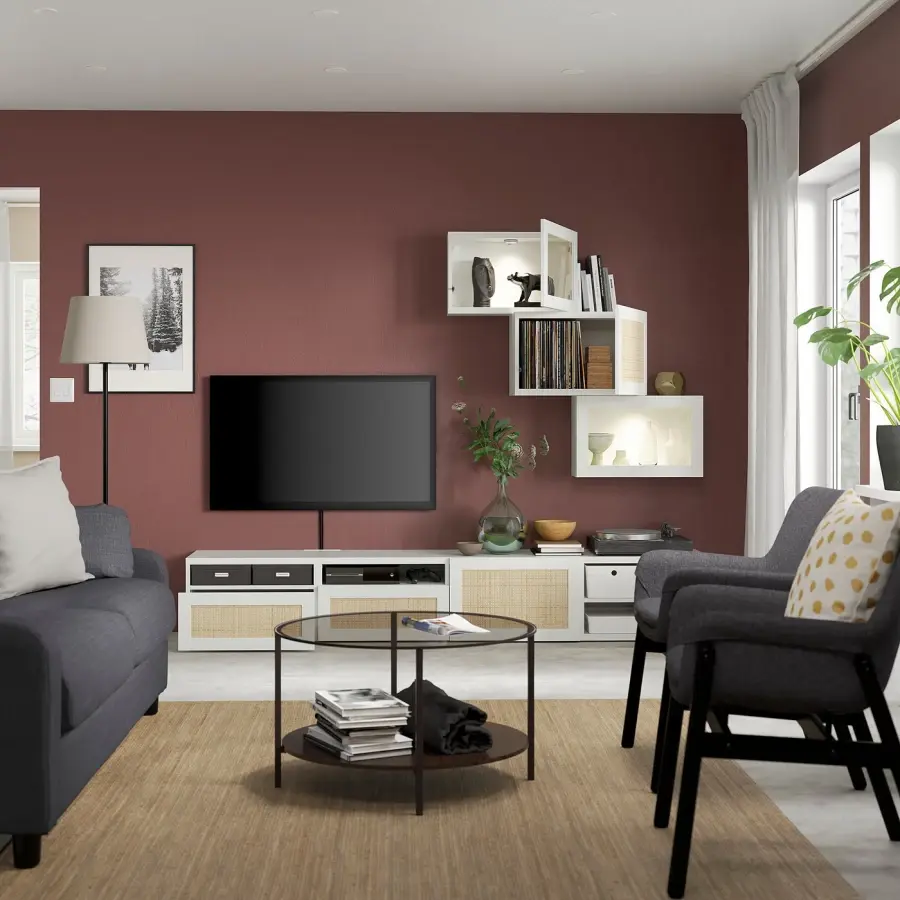 Тактильная поверхность придает фасаду СТУДСВИКЕН глубокий и теплый вид. Передняя часть может иметь современный или традиционный вид в зависимости от того, какие ручки и ручки вы выберете. Кабели от телевизора и других устройств легко держать вне поля зрения, но под рукой, поскольку в задней части тумбы под телевизор есть несколько розеток для кабелей. Отвод для кабеля в верхней части позволяет кабелям плавно спускаться к тумбе под телевизор. Полки регулируются, поэтому вы можете настроить пространство для хранения по мере необходимости. Ящики оснащены встроенными открывателями, поэтому их можно открыть легким нажатием. Компактные навесные шкафы максимально эффективно используют пространство стены над телевизором. Два выдвижных ящика позволяют легко хранить ваши вещи в порядке. Полки за дверцами предоставят вам еще больше места для хранения. Оптимизируйте и организуйте свое хранилище БЕСТО с помощью коробок и вставок, которые вам нравятся.