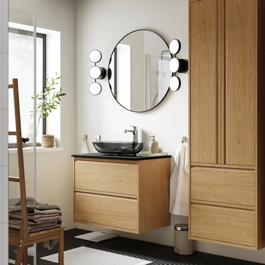 ИКЕА IKEA Мебель для ванной комнаты ÄNGSJÖN восхищает современным внешним видом и минималистскими деталями. Шкаф под умывальник в сочетании со стеклянной столешницей и умывальником создает стильный элемент с неповторимым характером в ванной комнате. Оригинальная икея/ikea