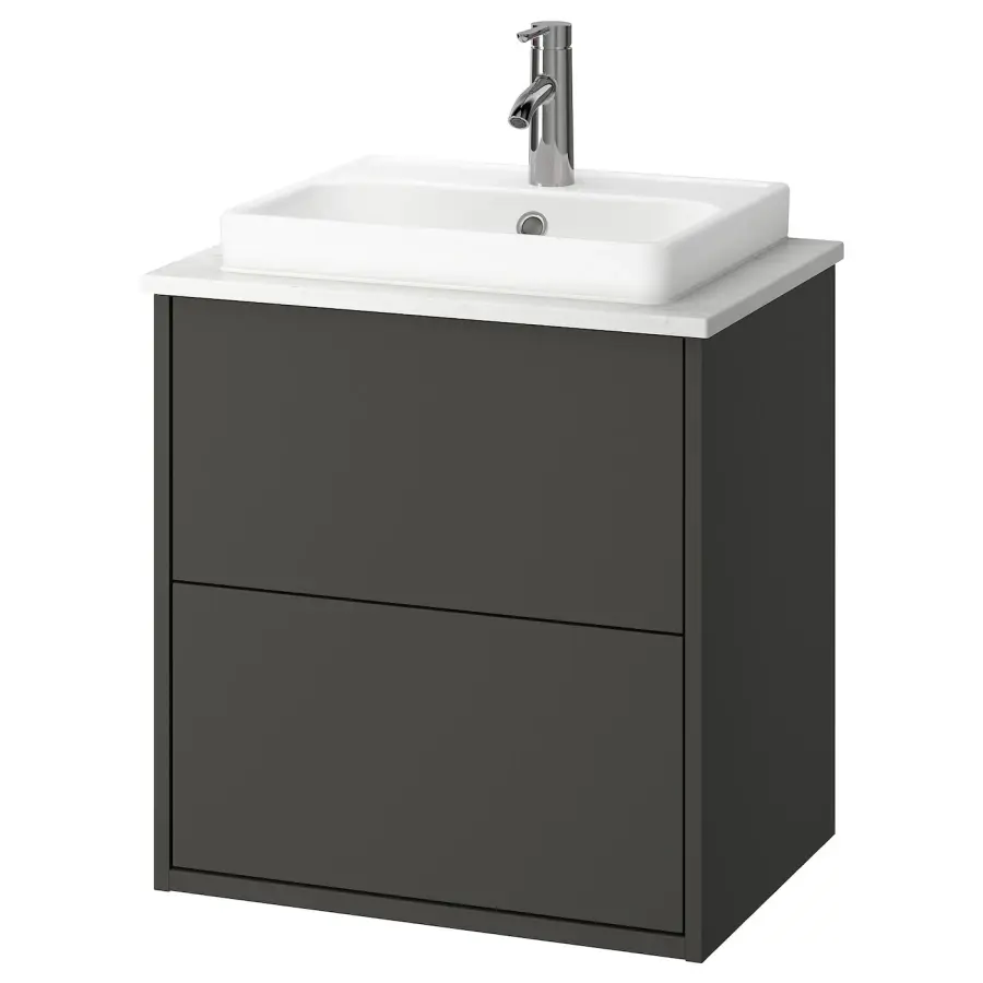 ИКЕА IKEA Мебель для ванной комнаты HAVBÄCK отличается простым, непритязательным дизайном. Шкаф под умывальник, совмещенный со столешницей, а также частично утопленный в столешницу умывальник может стать уникальным элементом дизайна, если добавить к нему ручки или ручки. Оригинальная икея/ikea