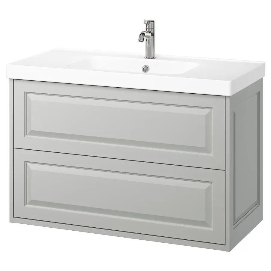 ИКЕА IKEA Мебель для ванной комнаты ТЭННФОРСЕН излучает классическую элегантность благодаря своим скошенным краям, которые придают ей вид ручной работы. Комбинация с 2 просторными ящиками и большим количеством места на раковине, которое можно использовать для зубных щеток и мыла. Оригинальная икея/ikea