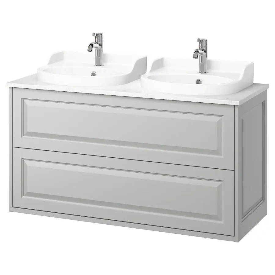 Тумба для ванной - TÄNNFORSEN / RUTSJÖN / TАNNFORSEN / RUTSJОN IKEA/ ТАНФФОРСЕН/РУСТЕН ИКЕА, 122х76 см, белый/серый