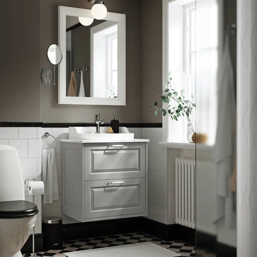 Тумба для ванной - TÄNNFORSEN / RUTSJÖN / TАNNFORSEN / RUTSJОN IKEA/ ТАНФФОРСЕН/РУСТЕН ИКЕА, 62х76 см, серый/белый