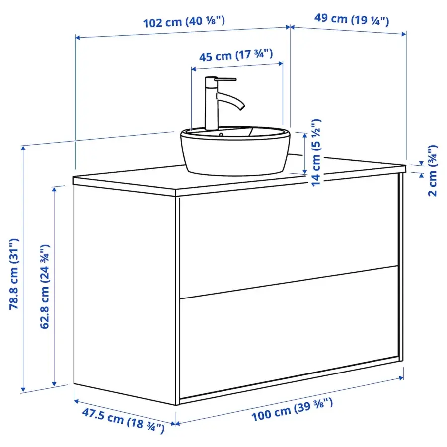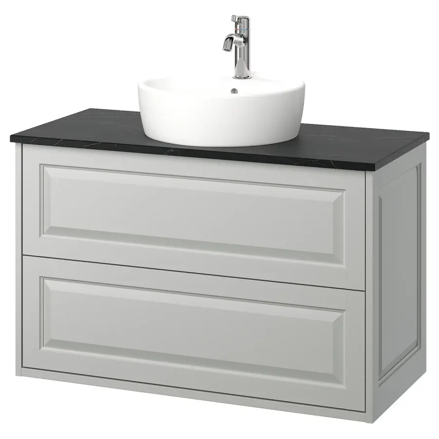 ИКЕА IKEA Мебель для ванной комнаты ТЭННФОРСЕН со скошенными краями излучает классическую элегантность. Шкаф под умывальник в сочетании со столешницей и круглой раковиной на столешнице создают уникальный декоративный элемент, напоминающий о прекрасном мастерстве. Оригинальная икея/ikea