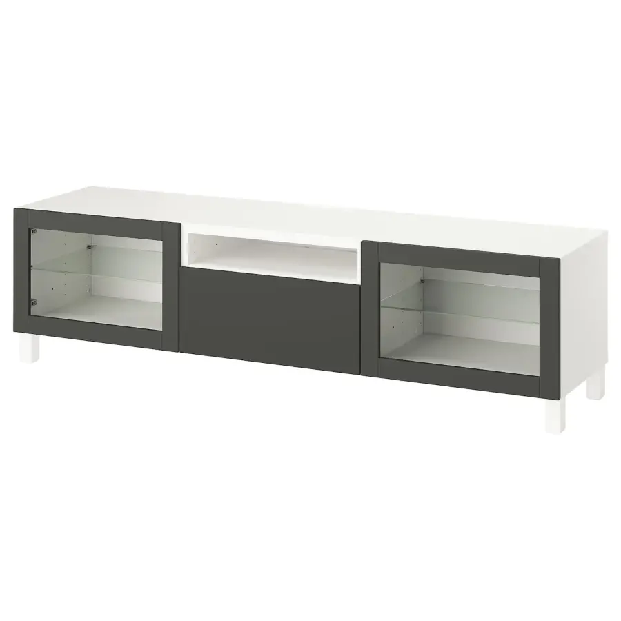Тумба под ТВ - IKEA BESTÅ/BESTA/БЕСТО ИКЕА, 42х48х180 см, белый/темно-серый