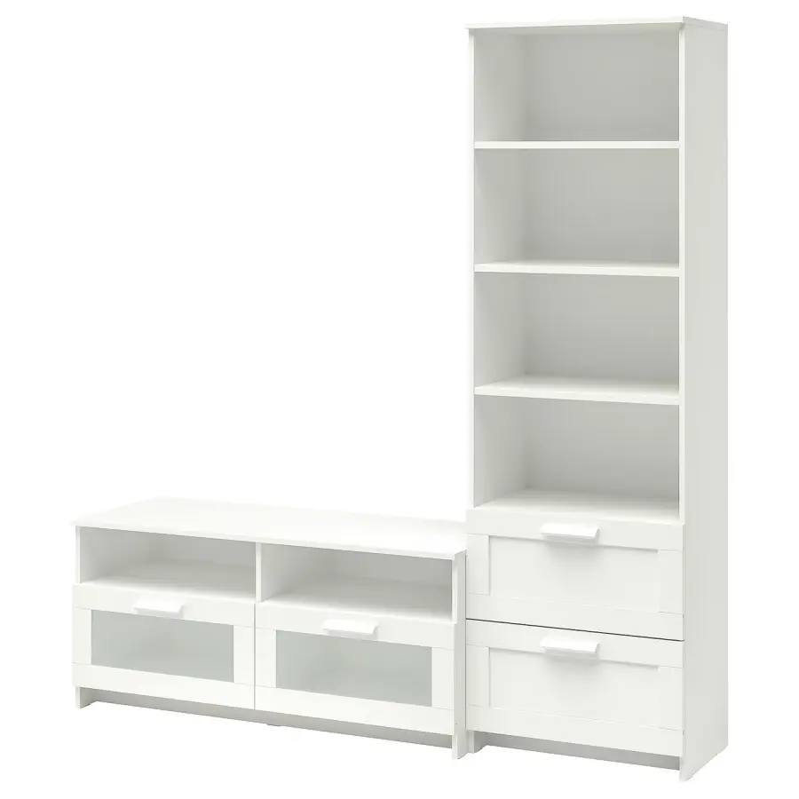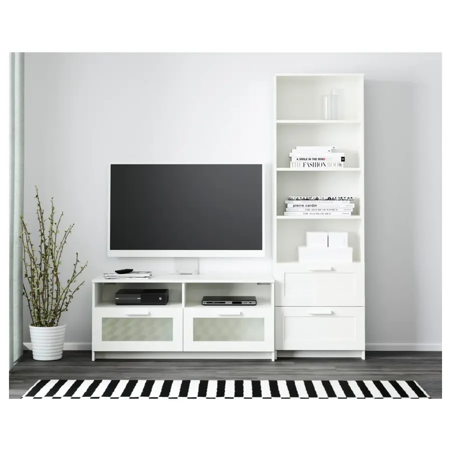 ИКЕА IKEA В этой комбинации для хранения есть место для вашего телевизора и для демонстрации ваших любимых вещей на открытых регулируемых полках. Регулируемые полки позволяют настроить пространство для хранения по мере необходимости. Кабельные розетки позволяют легко вывести кабели сзади, поэтому они скрыты от глаз, но всегда под рукой, когда они вам понадобятся. Оригинальная икея/ikea