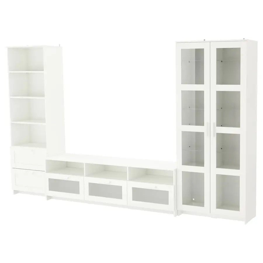 ИКЕА IKEA Эта комбинация для хранения телевизора имеет много дополнительного места для хранения и позволяет легко организовать вашу гостиную. Кабельные розетки позволяют легко вывести кабели сзади, поэтому они скрыты от глаз, но всегда под рукой, когда они вам нужны. Плавно выдвигающиеся ящики с упорами, чтобы удерживать их на месте. Регулируемые полки, так что вы можете настроить свое хранилище по мере необходимости. выключить, а также защитить вашу стеклянную посуду или вашу любимую коллекцию. Оригинальная икея/ikea