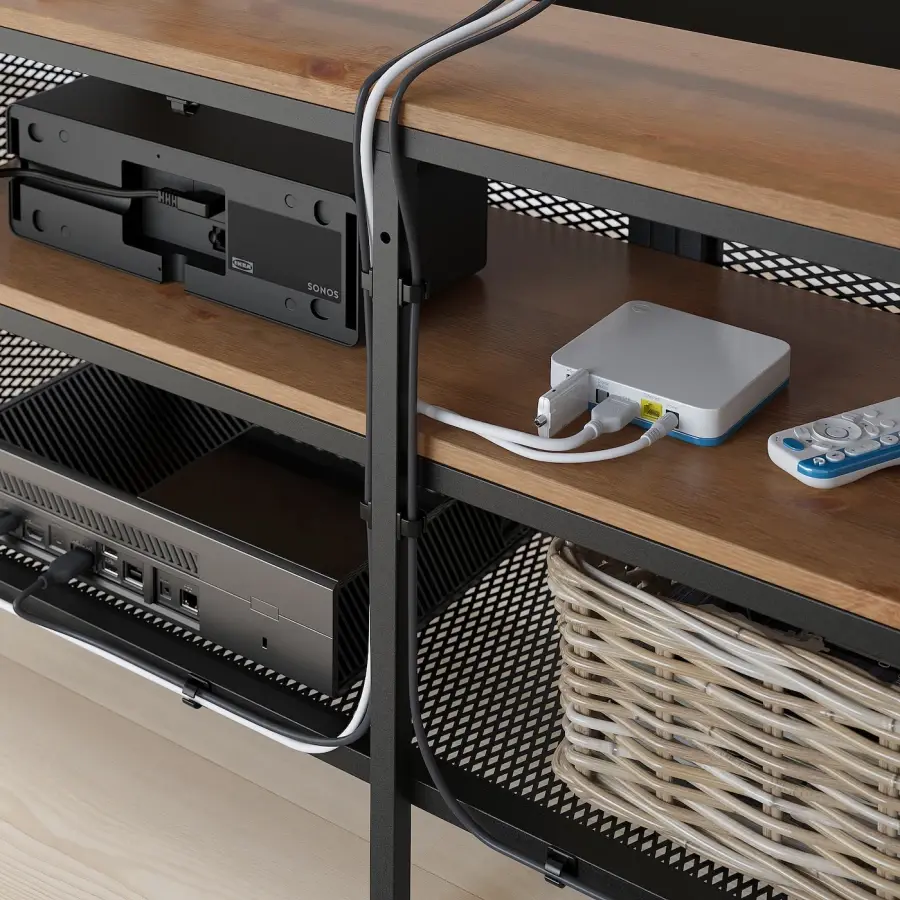 ИКЕА IKEA Эта тумба под телевизор в деревенском стиле из металла и массива дерева имеет открытую спинку, поэтому шнуры и кабели легко размещаются. Вы можете разместить электронное оборудование за дверцами из металлической сетки, поскольку они пропускают сигналы с вашего пульта дистанционного управления. Блок для хранения устойчиво стоит даже на неровных полах, поскольку у него есть регулируемые ножки. Эта деревенская полка изготовлена из металла и массива дерева, что делает каждый предмет мебели уникальным. Оригинальная икея/ikea