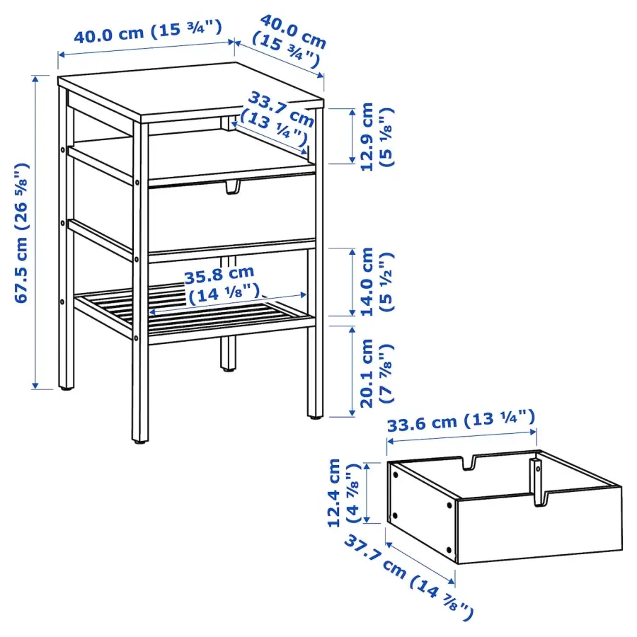ИКЕА IKEA Доступ к ящику возможен с обеих сторон. Вы можете создать перегородку или комбинацию для хранения, поставив несколько прикроватных тумбочек рядом друг с другом. Кабели легко прокладываются через ручки с обеих сторон ящика. Серия NORDKISA из бамбука прекрасно сочетается с сериями для хранения NORDLI и ELVARLI. Оригинальная икея/ikea