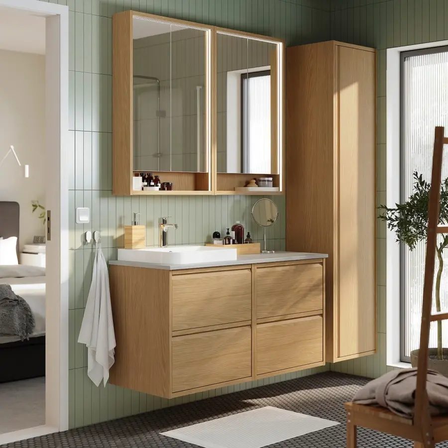 ИКЕА IKEA Если вы делите ванную комнату с другими людьми, это решение даст вам собственный ящик, а может быть, даже два. Шкаф под умывальник совмещен с большой столешницей, на которой поместятся все вещи, которые вам хотелось бы иметь под рукой, собираясь утром. Оригинальная икея/ikea