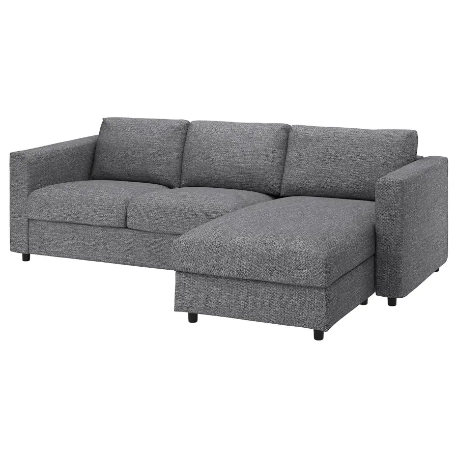 VIMLE 3-местный диван с шезлонгом/Лейде серо-черный ИКЕА