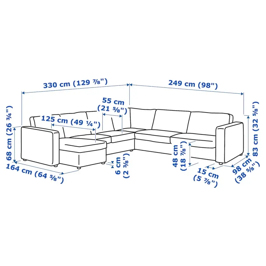 VIMLE 5-местный угловой диван с шезлонгом/Лейде красный/коричневый ИКЕА