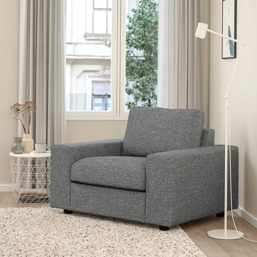VIMLE Кресло с широкими подлокотниками/Лейде серо-черный ИКЕА