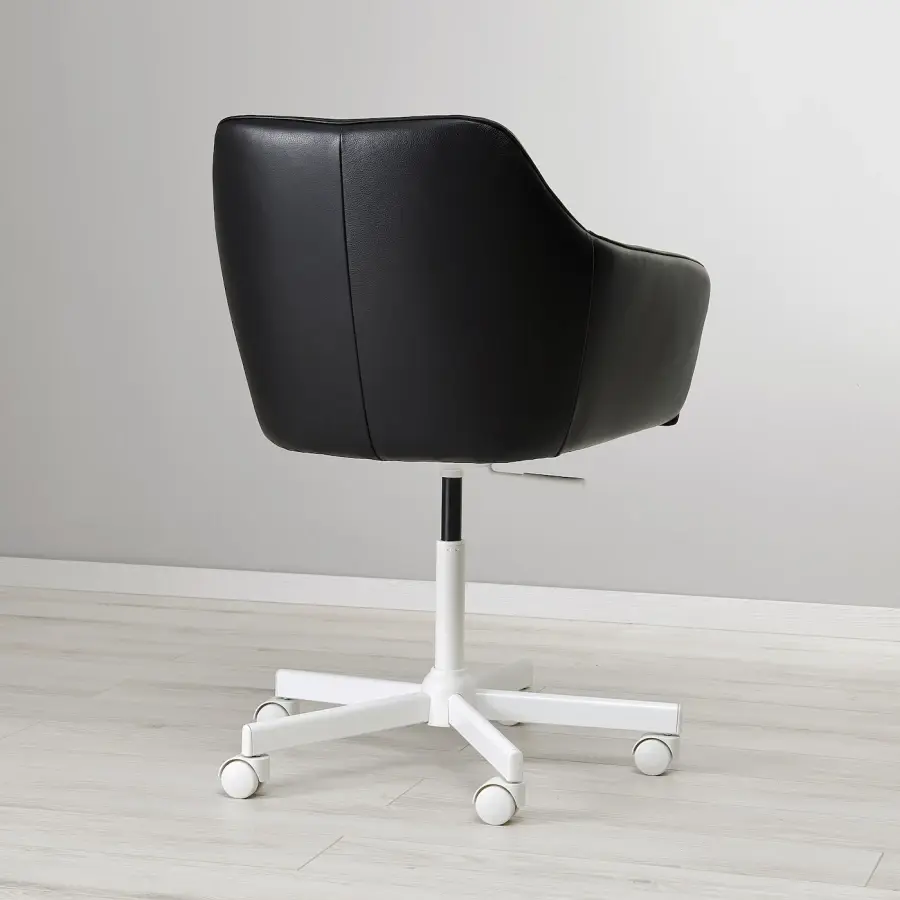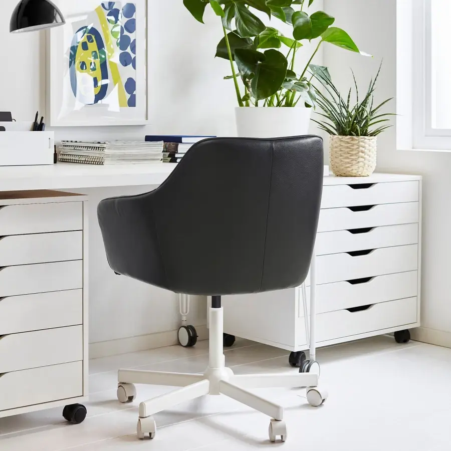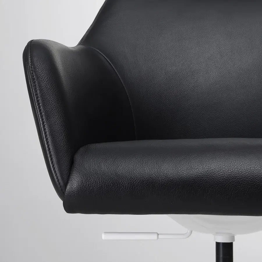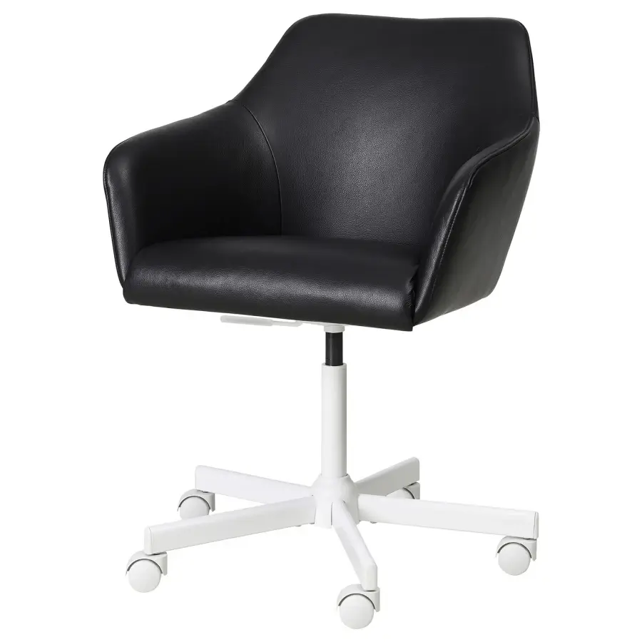 ИКЕА IKEA Вращающийся стул округлых форм с мягкой обивкой. Отделан прочной кожаной обивкой, которая хорошо впишется в любой интерьер. Колеса позволяют легко перемещать кресло из одного места в другое. Оригинальная икея/ikea