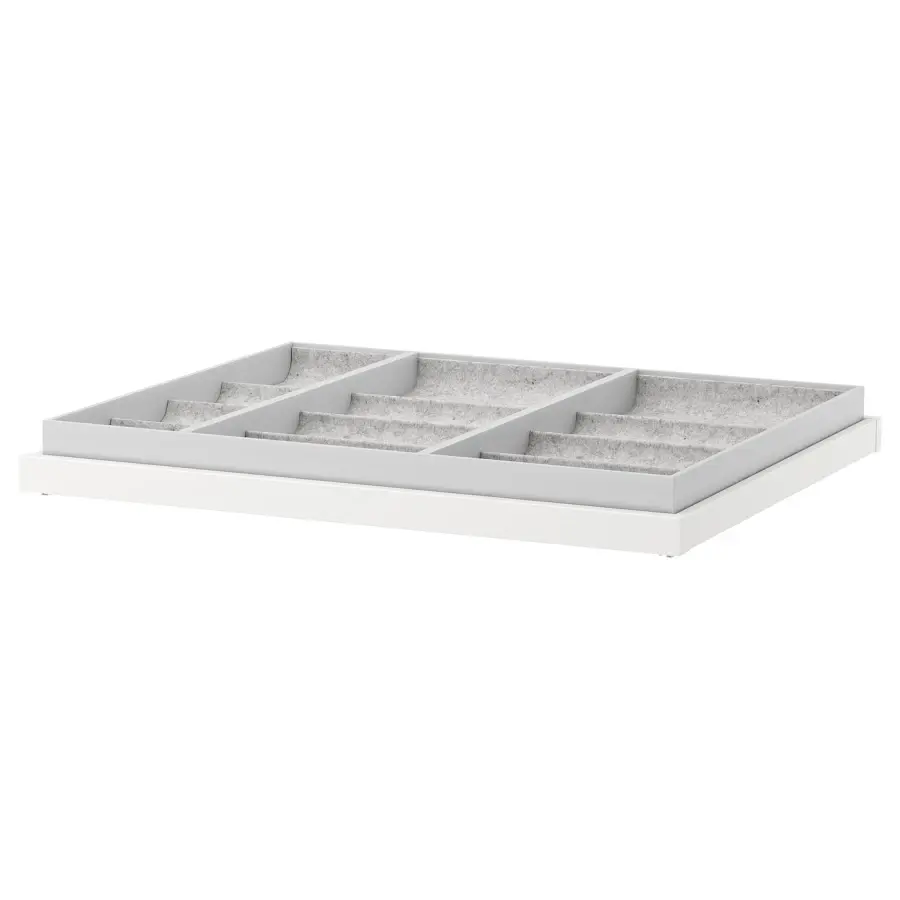 ИКЕА IKEA Вставка поможет вам хранить и упорядочивать солнцезащитные очки, часы и другие аксессуары. У каждого аксессуара есть собственное отделение с отделениями разных размеров. И все они легко доступны, когда вы размещаете вставку так, чтобы большие отделения были обращены к спине. Мягкий войлок защищает ваши аксессуары и удерживает их на месте. Вы можете легко видеть свои вещи и дотягиваться до них, когда лоток выдвигается. Медленно, бесшумно и мягко выдвигается назад благодаря встроенному демпферу. Оригинальная икея/ikea