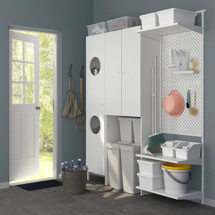 ИКЕА IKEA Превращает пространство над стиральной машиной в умное место для хранения. Идеально подходит, когда у вас мало места в прачечной. Скрывает моющие средства и чистящие средства за дверью. Оригинальная икея/ikea