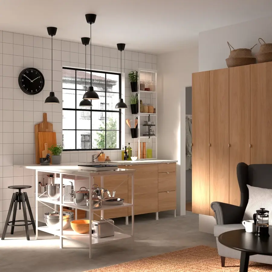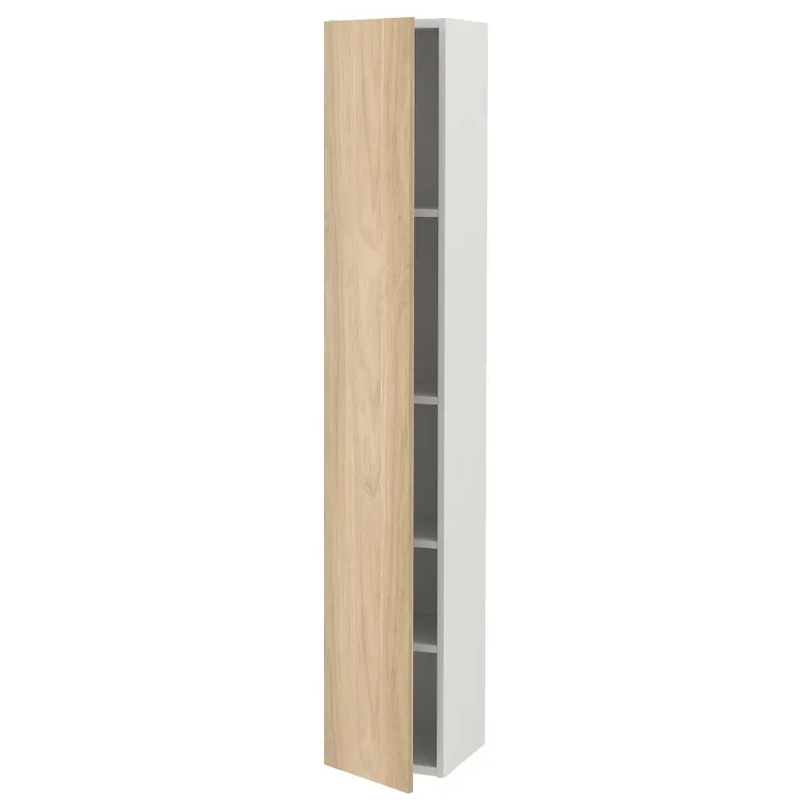 ИКЕА IKEA Этот высокий шкаф с 4 полками обеспечивает достаточно места для хранения продуктов, полотенец и моющих средств, не занимая слишком много места на полу. Идеально подходит для оптимального использования пространства на стенах в небольших помещениях. Уникальные клиновидные дюбели облегчают сборку, а фурнитура практически незаметна. Поверхность с рисунком под дуб сочетает в себе ощущение тепла дерева и способность фольги противостоять влаге, царапинам и ударам. Гарантия 10 лет. Ознакомьтесь с условиями в гарантийной брошюре. Оригинальная икея/ikea