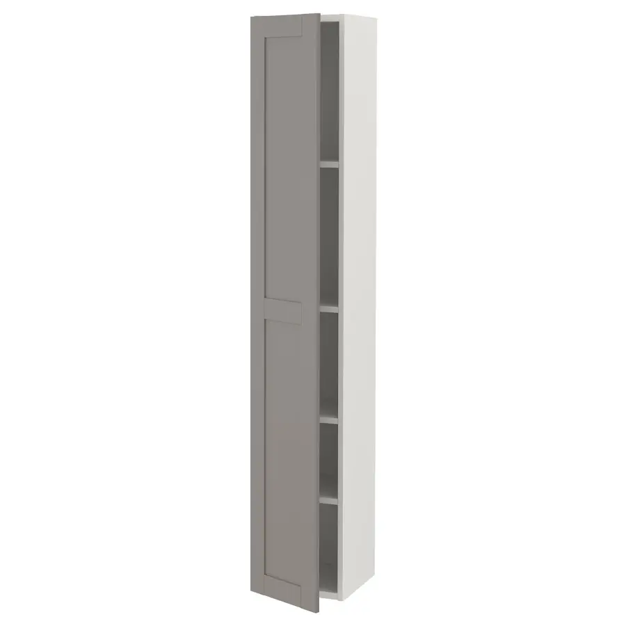 ИКЕА IKEA Этот высокий шкаф с 4 полками обеспечивает достаточно места для хранения продуктов, полотенец и моющих средств, не занимая слишком много места на полу. Идеально подходит для оптимального использования пространства на стене в небольших помещениях. Уникальные клиновидные дюбели упрощают сборку, а фурнитура почти невидима. Серый цвет сочетается со всем и создает ощущение тепла и уюта. Идеальный выбор, если вы хотите сдержанный цвет в качестве основы. Модерн или классика – выбор за вами. Гарантия 10 лет. Ознакомьтесь с условиями в гарантийной брошюре. Оригинальная икея/ikea