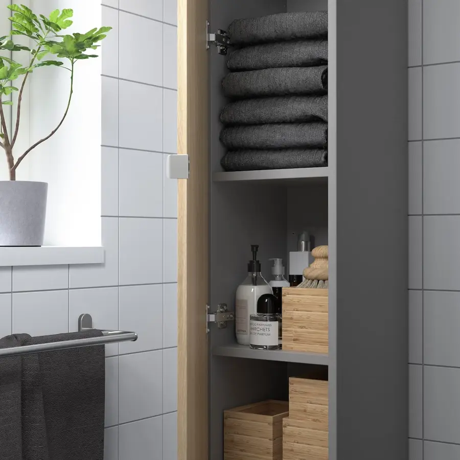 ИКЕА IKEA Этот высокий шкаф с 4 полками обеспечивает достаточно места для хранения продуктов, полотенец и моющих средств, не занимая слишком много места на полу. Идеально подходит для оптимального использования пространства на стенах в небольших помещениях. Уникальные клиновидные дюбели облегчают сборку, а фурнитура практически незаметна. Поверхность с рисунком под дуб сочетает в себе ощущение тепла дерева и способность фольги противостоять влаге, царапинам и ударам. Гарантия 10 лет. Ознакомьтесь с условиями в гарантийной брошюре. Оригинальная икея/ikea
