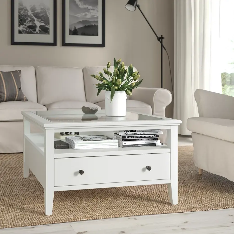 ИКЕА IKEA Стеклянную столешницу легко содержать в чистоте, она добавляет легкости вашему пространству. Под столешницей имеется открытая витрина, которую вы можете оформить собственными украшениями. Один закрытый ящик помогает поддерживать порядок. Создайте гармоничную атмосферу дома, объединив этот журнальный столик с другой мебелью серии ИДАНЭС. Инновационная складная конструкция позволяет быстро и легко собрать ящики. Ящик закрывается бесшумно и мягко благодаря встроенной функции плавного закрывания. Сборка выполняется быстро и легко благодаря клиновому дюбелю, который защелкивается в предварительно просверленных отверстиях. Оригинальная икея/ikea